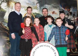 In diesem Jahr stand u.a. der Film "Merida" auf dem Programm, eine Geschichte von einer schottischen Prinzessin, die wider Willen verheiratet werden soll. Es geht um Rollenbild, Mythen, Legenden und darum, sich dem Schicksal zu stellen. Und natürlich geht es auch um die schottischen Highlands. Was lag da näher, als die Schüler, die diesen Film eines Vormittags besuchen wollten, mit schottischer Dudelsack-Musik im Kino zu begrüßen. So wurden die Schüler und Schülerinnen der Grundschule Boke im Kino mit Dudelsack-Klängen aus dem Dudelsack des PipeMajors der Highland Dragon Pipe Band (Andrea Heger) begrüßt. Nähere Informationen finden sich auf der Homepage des Kreis Paderborns