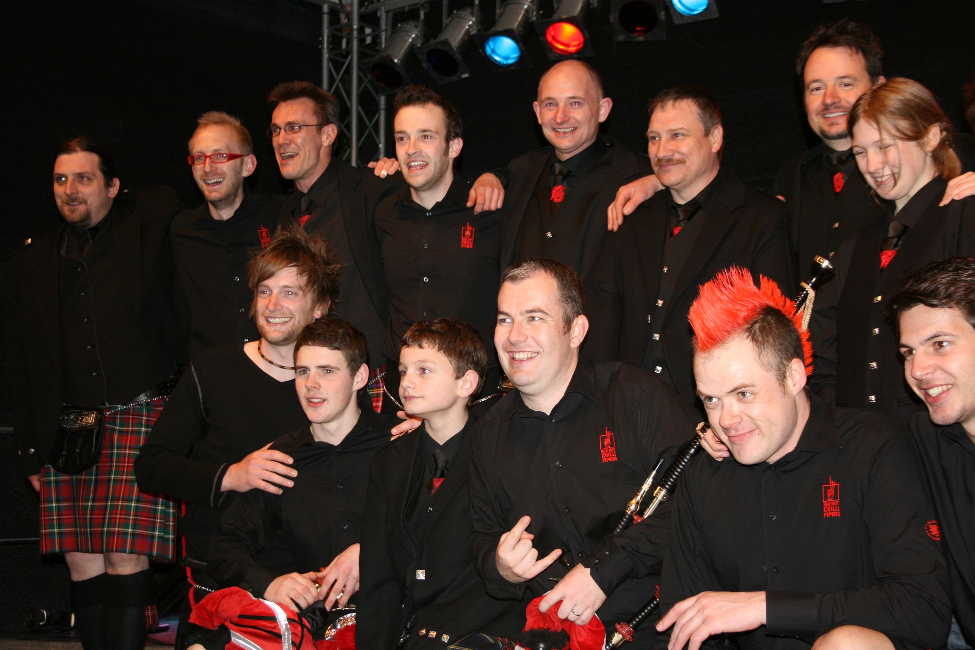 Der Innenhof war gut gefällt, das Wetter an diesem Abend etwas milder als die Tage zuvor und vor allem Trocken, die Stimmung war super, Guinness und Kilkenny wurden in den Getränkeständen ausgegeben, und wir marschierten zwischen den vielen angereisten Zuhörern und Zuschauern vor die Bühne. Und mit dabei auch Debby, George und Carla, die alle Drei ihren ersten großen, kompletten Gig im Rahmen der Band hatten. Ihr habt Euch super gemacht und es hat Spass gemacht, mit Euch in dieser Formation zusammen zu spielen. Wir waren super zufrieden mit unserem Auftritt und freuten uns auf die Red Hot Chilli Pipers, die dann unter Nebelschwaden auf die Bühne kamen und sogleich ein Feuerwerk an Musik ablieferten. Sofort war klar, das alle angereisten Red Hot Chilli Pipers mit viel Spass und Lust auf die Bühne gekommen sind und der Funke zum Publikum sofort übergesprungen ist. Viele bekannte Stücke wurden extrem und originell präsentiert, Hits von AC/DC, Coldplay und ZZ Top wurden durch das Zusammenspiel mit Rockinstrumenten und Pipes verbunden und entfalteten so eine durchschlagende, mitreißende Wirkung. Fast zwei Stunden explosive Bag-Rock-Musik am Stück, sowas schaffen derzeit nur die Red Hot Chilli Pipers. Das völlig begeisterte Publikum ging vor der Bühne ebenso entfesselt (für Ostwestfalen wirklich herausragend) mit, die mit viel körperlichem Tanzeinsatz dargebotenen Sets wurden durch die Fans beklatscht, mitgesungen und mitgetanzt. Die Red Hot Chilli Pipers verstanden, ihren Fans einzuheizen und viel Sympathie einzuspielen für die Pipemusik. Auch nach der Show zeigte sich, das die Chillis eine tolle, publikumsliebende Band sind. Trotz langer Show mit viel Körpereinsatz waren Sie sofort von der Bühne runter in das Publikum gekommen, um sich mit Ihnen auszutauschen. Berührungsängste hatten die Bag-Rocker nicht. Vor der Bühne ging der spaßige Abend mit den Schotten und den Ostwestfalen weiter.
